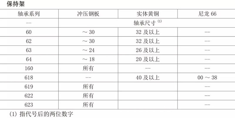 深沟球轴承通常使用钢板冲压浪形保持架,也可采用其他类型,如:尼龙 66 保持架或车制黄铜实体保持架。